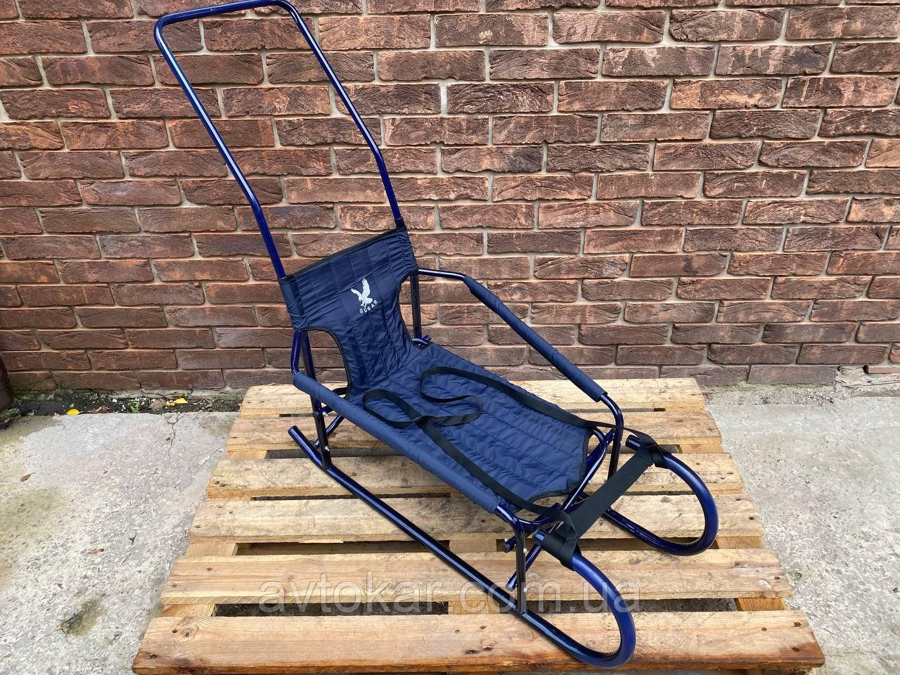 Дитячі санчата сині "Трансформер" складані з ручкою-штовхачем Кругле полози Уцінка ORG
